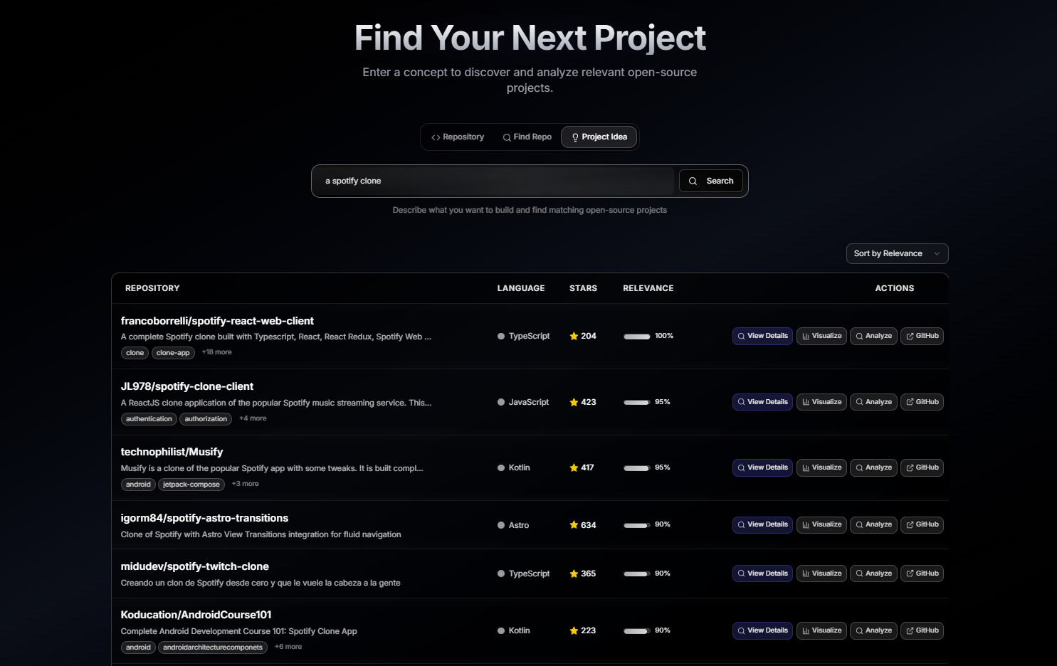Enter a concept to discover and analyze relevant open-source projects
